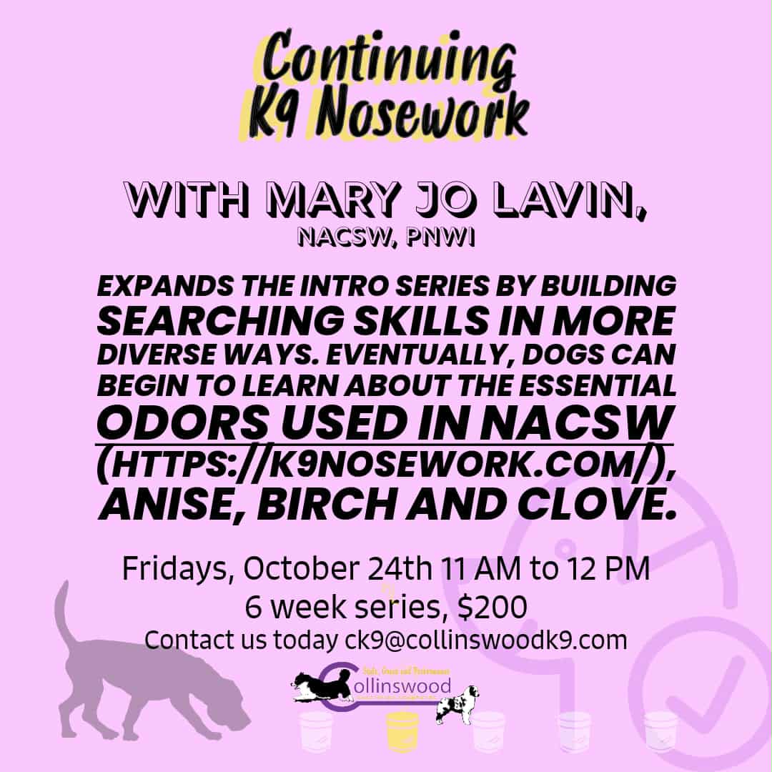 - New Puppy K / Obedience class w Jess starts 11/1 but is open to book now in the portal